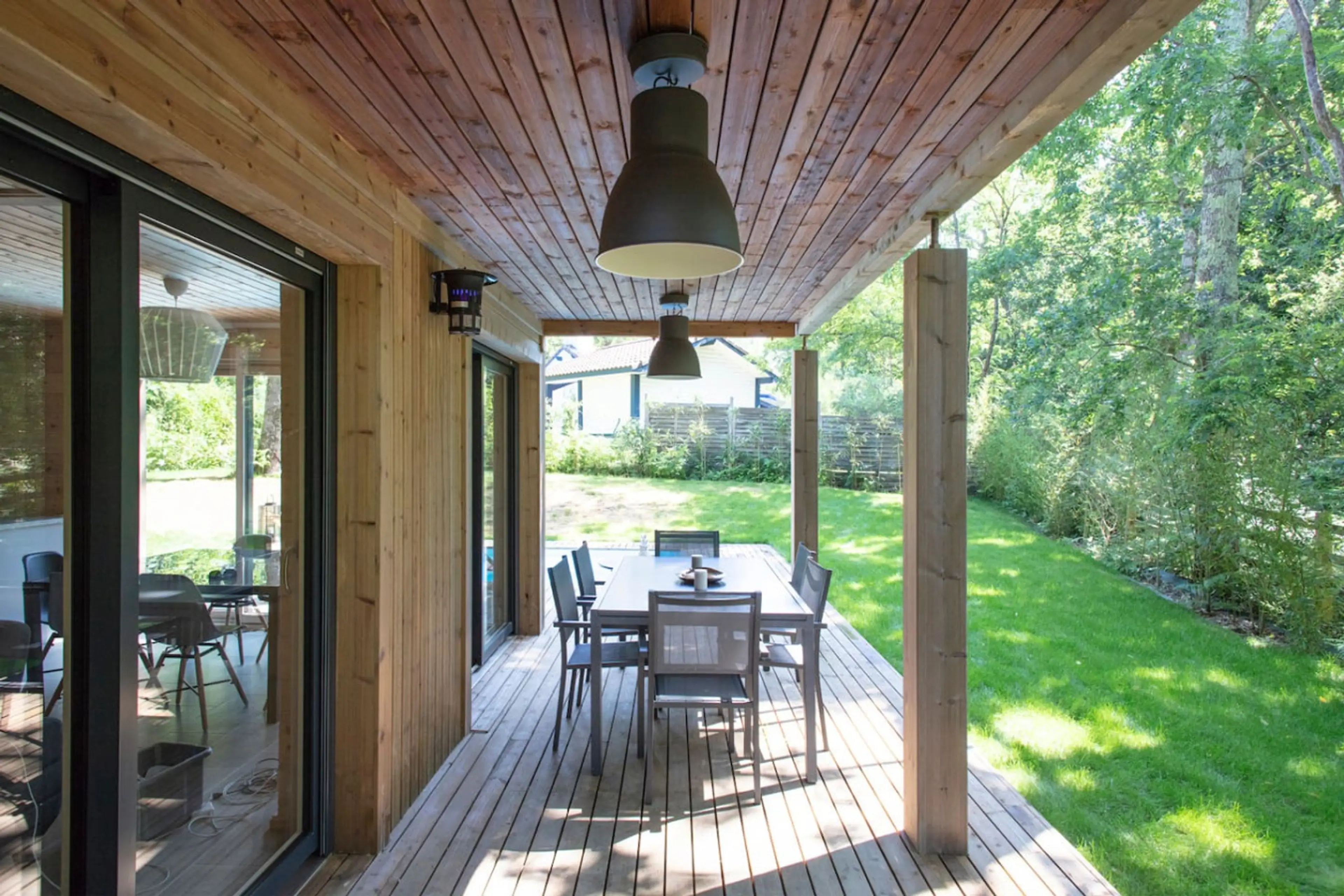 Discover this stunning contemporary wood villa, nestled in a quiet wooded cul-de-sac. Its elegant architecture hides a warm, chalet-style interior. The house features 4 air-conditioned suites (including one wheelchair accessible), with two queen-size beds and four single beds. Enjoy a bright living ...